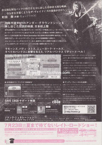 Blank Generation Richard Hell & The Voidoids 2005 Japan movie flyer / handbill
