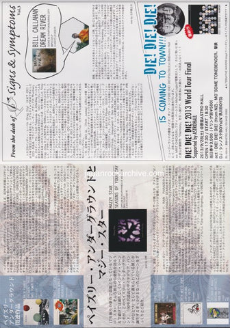 Note: Pamphlet folds open into 3 sections with graphic and text on both sides. Pamphlet promotes new 2013 alternative music album releases. Mint condition